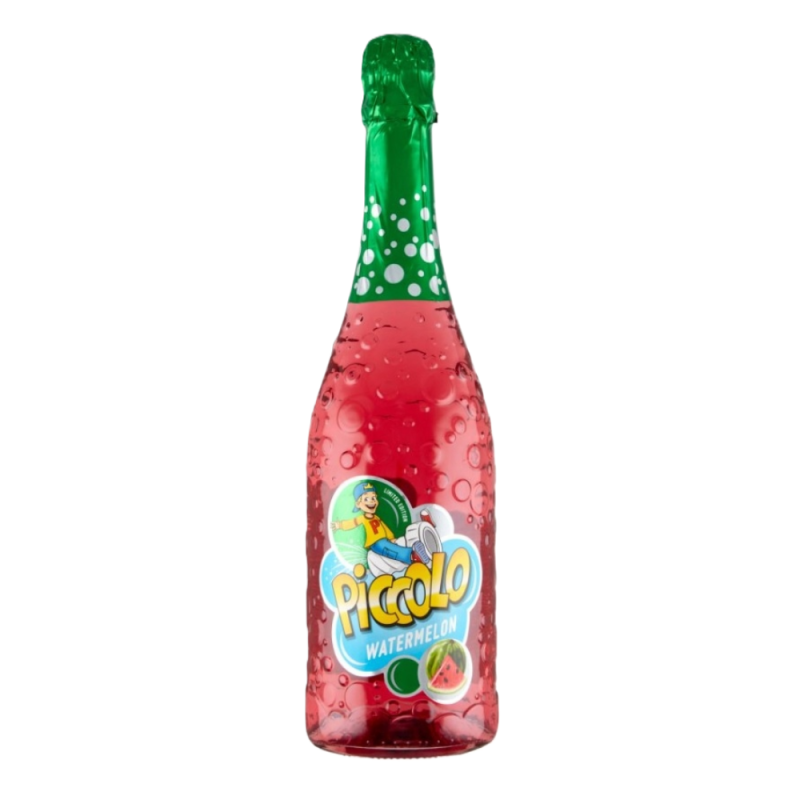 Szampan bezalkoholowy marki Piccolo to wręcz obowiązkowy produkt każdej dziecięcej imprezy. Produkowany z wysokiej jakości soków zagęszczonych. Pozbawiony sztucznych konserwantów, dzięki czemu bez obaw można podawać go pociechom. Intensywny, arbuzowy smak przypadnie do gustu każdemu, małemu smakoszowi. Szampan posiada ponad 20% zawartości owoców w składzie i jest zamknięty w butelce z drutowanym korkiem, przez co przypomina szampany dla dorosłych.