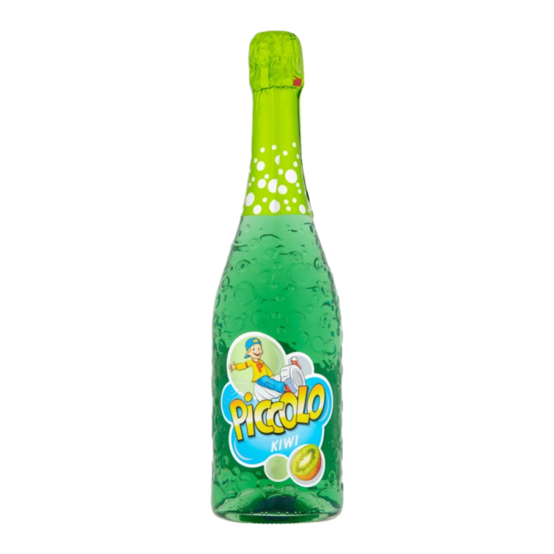 Szampan bezalkoholowy marki Piccolo to wręcz obowiązkowy produkt każdej dziecięcej imprezy. Produkowany z wysokiej jakości soków zagęszczonych. Pozbawiony sztucznych konserwantów, dzięki czemu bez obaw można podawać go pociechom. Intensywny, smak kiwi przypadnie do gustu każdemu, małemu smakoszowi. Szampan posiada ponad 22% zawartości owoców w składzie i jest zamknięty w butelce z drutowanym korkiem, przez co przypomina szampany dla dorosłych.