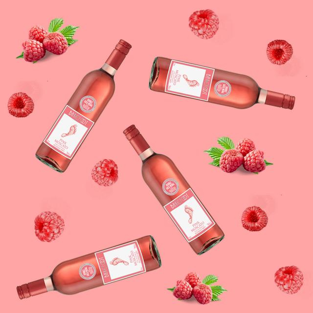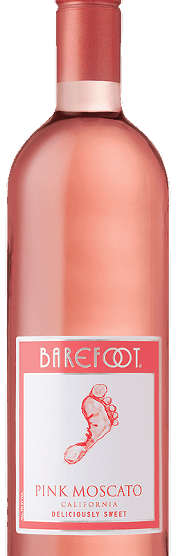 Moscato to różowe, słodkie, kalifornijskie wino. Logo marki Barefoot