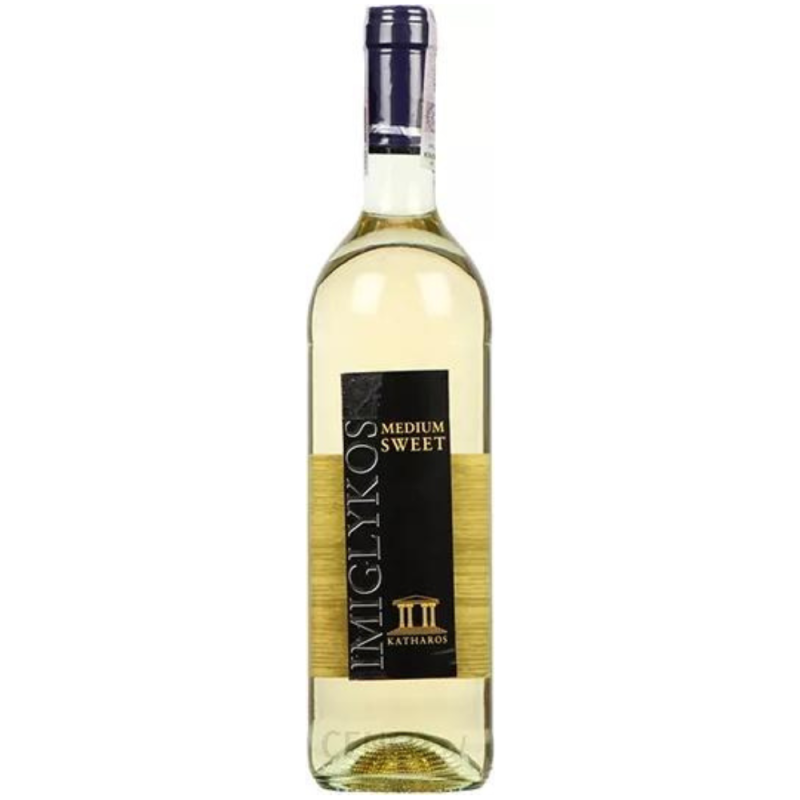 Doskonale zbudowane, delikatne i harmonijne, urzeka wyraźnie wyczuwalną nutą słodyczy z aromatami kwiatów i owoców cytrusowych. Idealnie smakuje podane w temperaturze 10-12°C zarówno jako aperitif oraz dodatek do deserów i sałatek. Wino z winnic Mediterra, Greece.