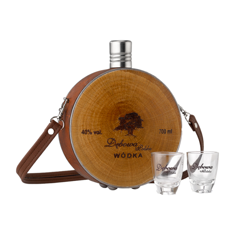 Wódka Dębowa Polska w manierce na skórzanym pasku to idealny wybór na oryginalny prezent, który łączy elegancję z funkcjonalnością. Klasyczny trunek najwyższej jakości jest zamknięty w bukłaku z wysokiej jakości stali szlachetnej, ozdobionym ręcznie montowanymi okładzinami z drewna dębowego, które zachwycają widoczną strukturą słoi i promieniami rdzeniowymi. Wyjątkowa stylistyka, nawiązująca do tradycji, sprawia, że bukłak doskonale pasuje do kolekcji podróżników czy miłośników przyrody. Produkt jest uzupełniony o firmowe kieliszki.
